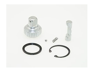 Ratchet Renewal Kits range in size from 1/4 inch drive up to 3/4 inch drive. It is important to order the size that corresponds to the one you are replacing. Kit part numbers are assigned by spindle size. In addition to a new spindle, the kit includes a reversing pin, washer, retaining ring, spring, and ball.