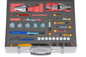 The DMC1020-1 CASA CN-235 Wiring System Maintenance Kit provides a turn-key solution and the tools necessary to strip, crimp, install and remove the typical contacts and terminals of this wiring system. The DMC1020-1 kit includes the tool to application cross reference information that indicates the particular tool(s) that should be selected to repair a specific connector, contact, or terminal. The kit also contains illustrated operating instructions for the designated tooling.