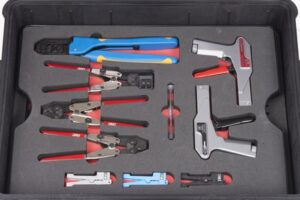 ALL IN ONE. Since these tools, together? with their operating instructions, are contained in a single kit, the connector repair can be made in the shortest time possible, thus permitting a rapid return of your aircraft to service. Tool kit supplied in 1 environmentally sealed cases and includes: Name Plate, Foam Pads/Inserts, Contents Charts, Instruction Charts, and Tool Selection Charts.