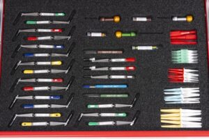Since these tools, together with their operating instructions, are contained in a single kit, the connector repair can be made in the shortest time possible, thus permitting a rapid return of your aircraft to service. Tool kit supplied in 1 five-drawer cabinet and includes: Name Plate, Foam Pads/Inserts, Contents Charts, Instruction Charts, and Tool Selection Charts.