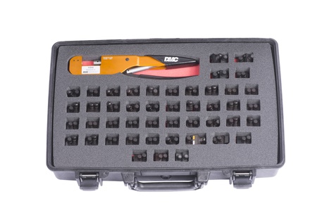 The DMC2315 Tool Kit contains the HX4 (M22520/5-01) and die sets that accommodate most Coaxial and Triaxial connectors conforming to MIL-DTL-39012 and MIL-DTL-39029. Other applications include insulated and uninsulated terminals, wire splices, and end caps such as M81824 and M7928.
